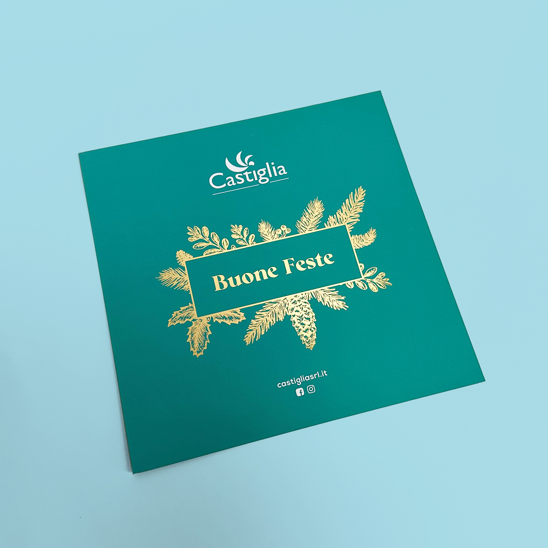 Cartoline con finitura in oro opaco complete di busta e adesivo personalizzato