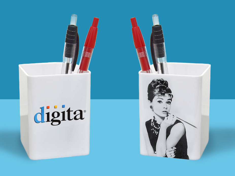 Possibilità di personalizzare oggetti dalla base piatta con stampa diretta uv in esacromia.